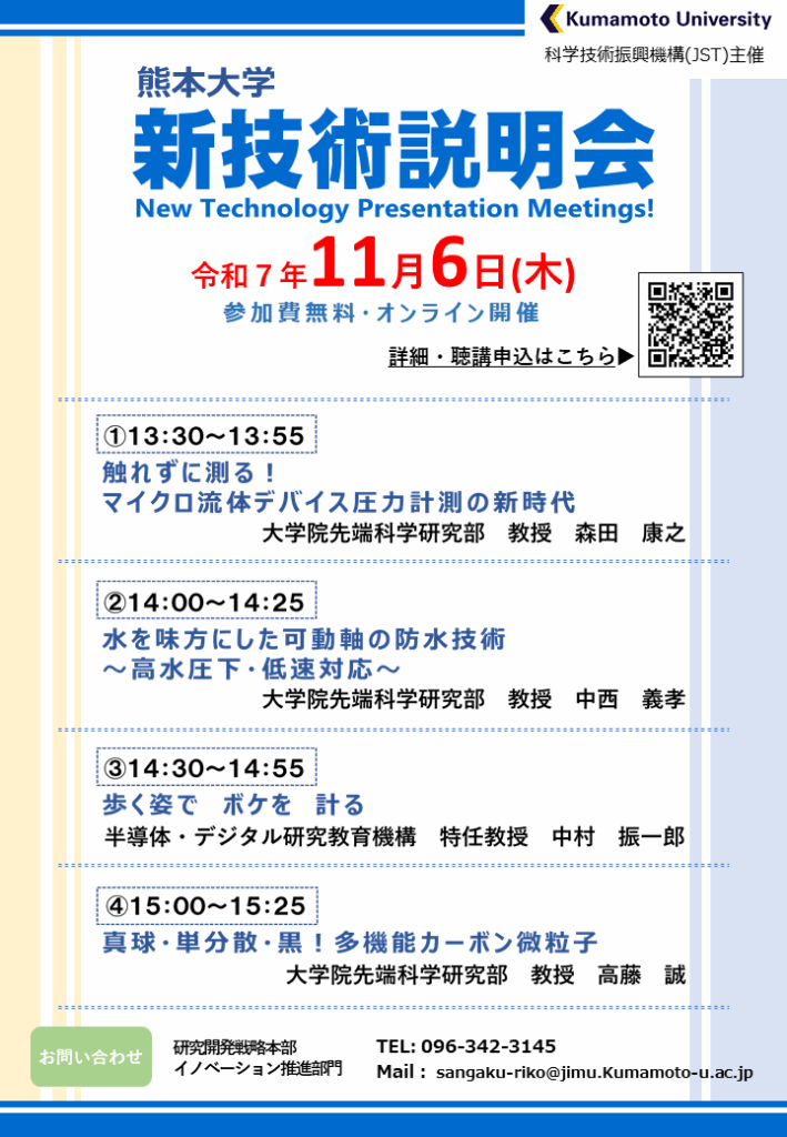 令和7年11月6日 (木) に「熊本大学 新技術説明会」をオンラインで開催します。