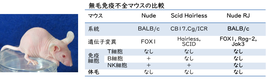 - 超免疫不全 (ヒト正常細胞・腫瘍細胞が生着しやすい)